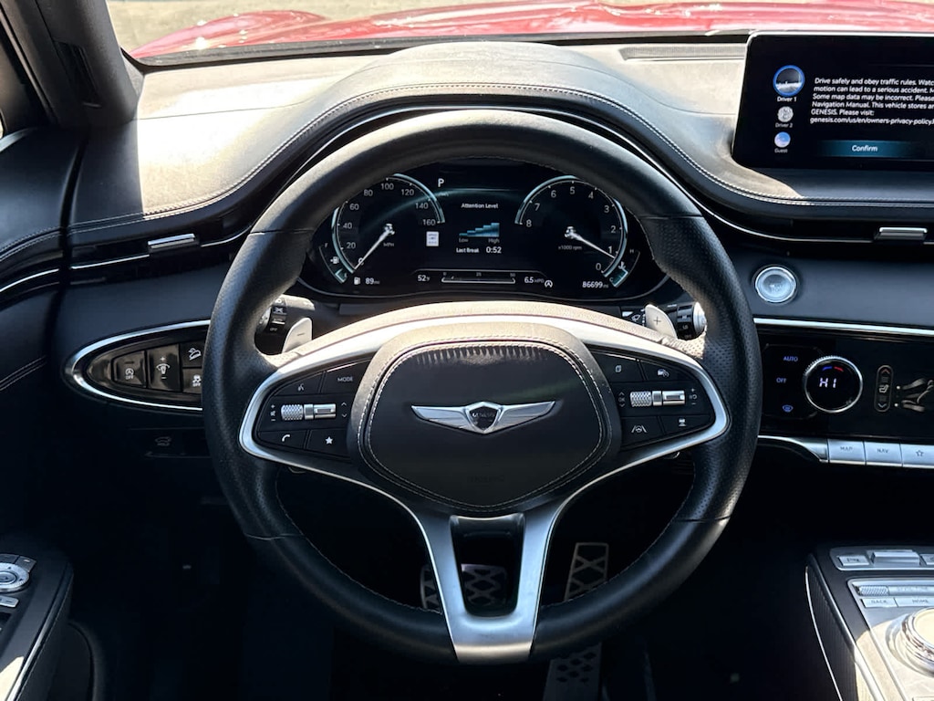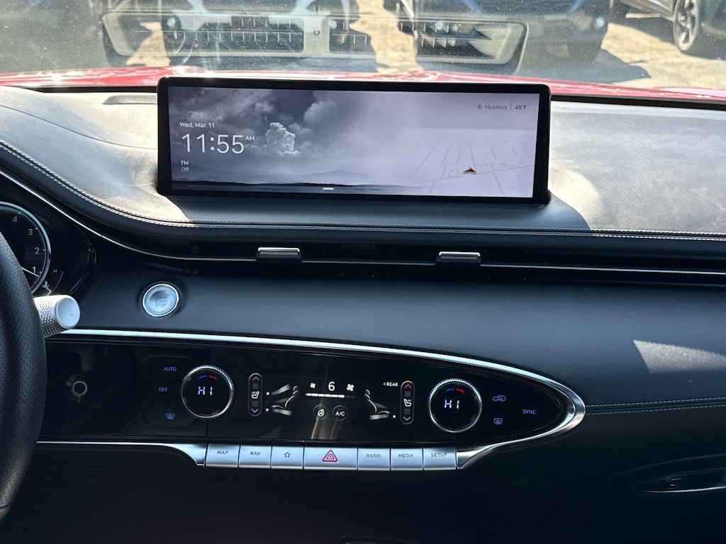 Navigation, All Wheel Drive, Power Liftgate, Turbocharged, Satellite Radio, iPod/MP3 Input, Onboard Communications System, Remote Engine Start, Smart Device Integration, Apple CarPlay® Rear Spoiler, MP3 Player, Privacy Glass, Remote Trunk Release. Serviced here, Non-Smoker vehicle Genesis 2.5T with Mauna Red exterior and Obsidian Black interior features a 4 Cylinder Engine with 300 HP at 5800 RPM*.